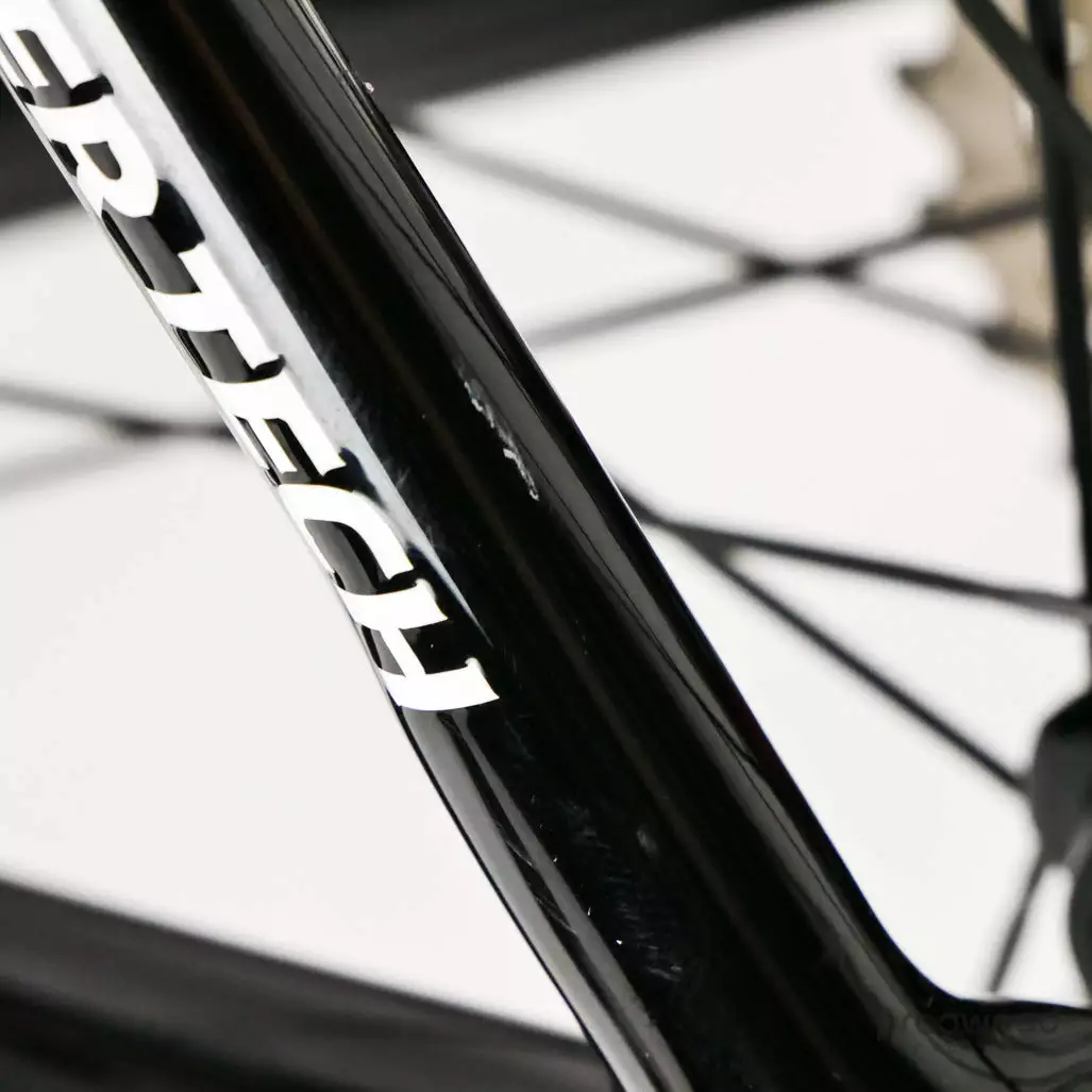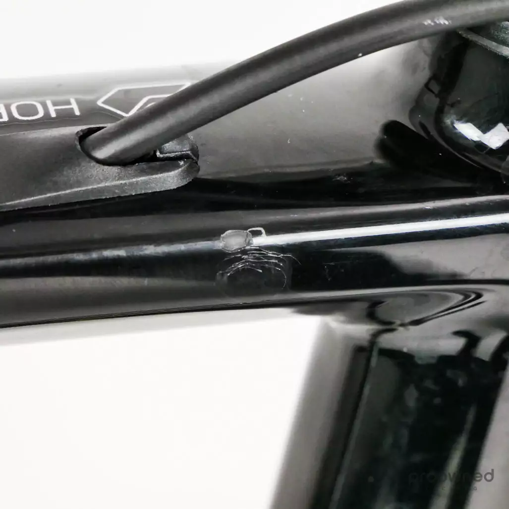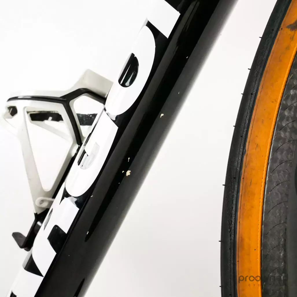 The frame has scratches on the downtube, top tube, fork, and bottom bracket.