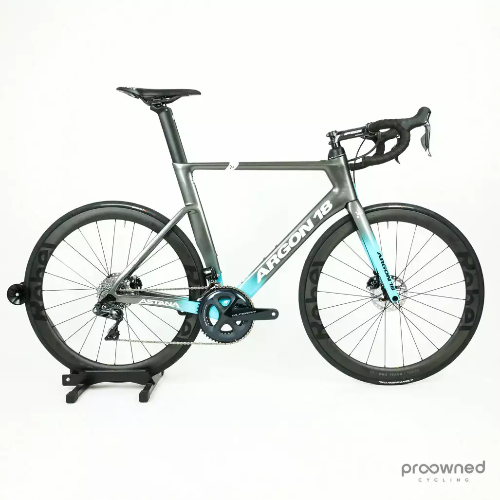 Brand new Argon 18 NItrogen Pro Disc made for Team Astana equipped with a brand new Shimano Ultegra Di2 groupset.