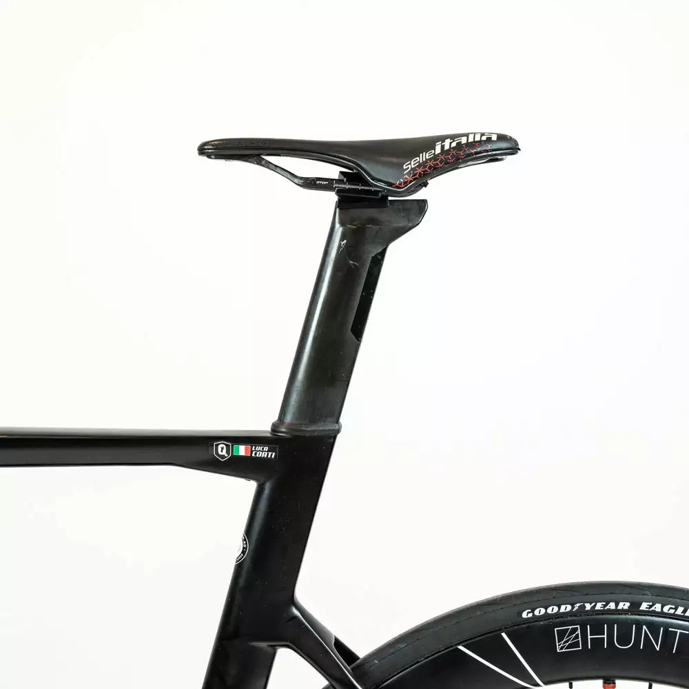 Seat post: Frame Specific, carbon. setback (Very good)