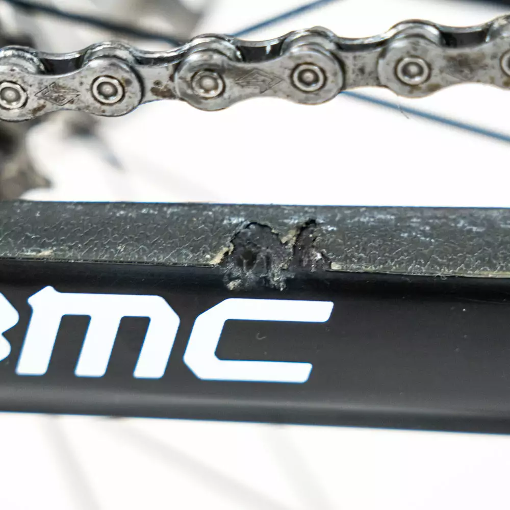 Scratches: Handlebar, Seat post, Chainstay, Down tube, Seat stay, Top tube, Seat Tube, Derailleur, Levers, Crankset, Wheels.