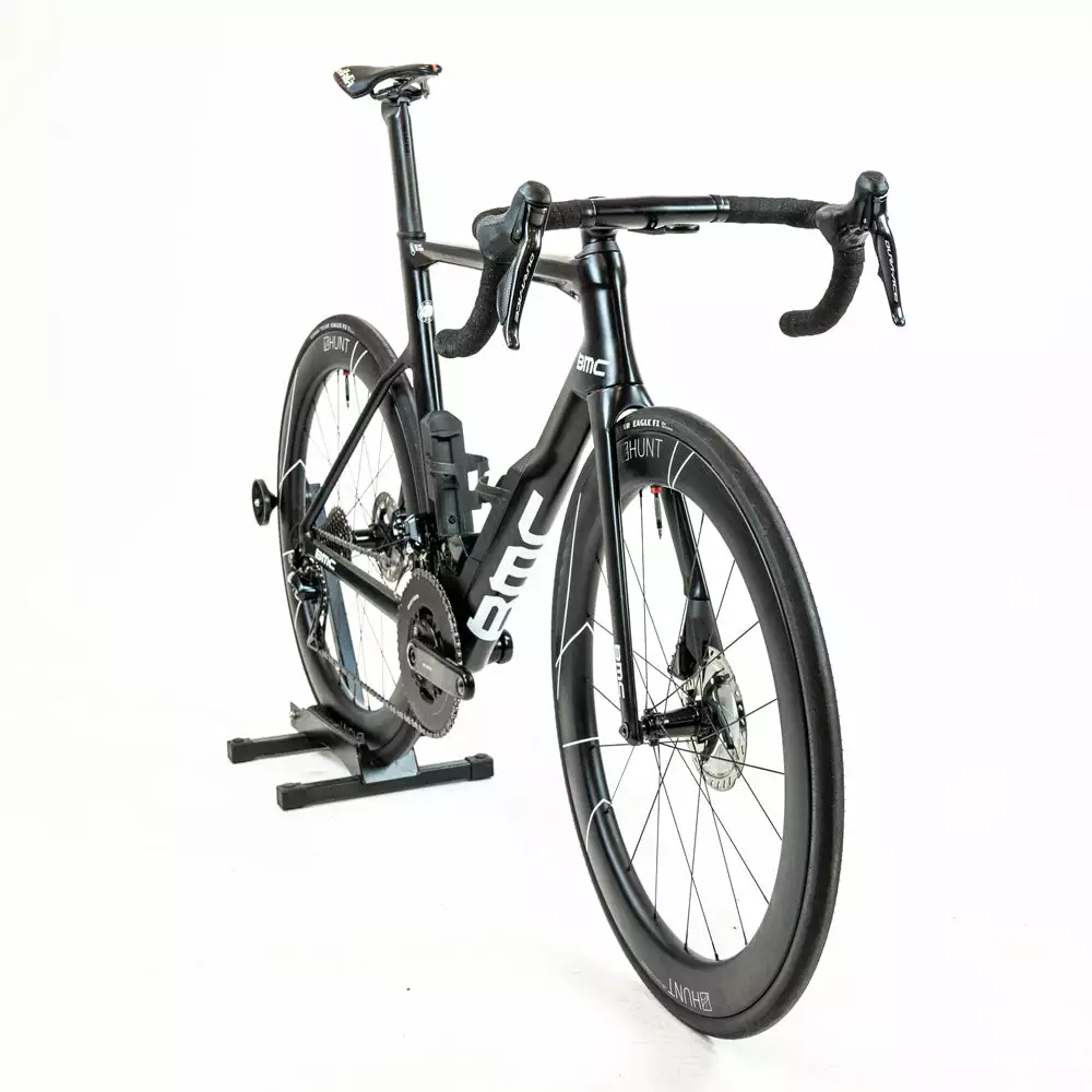 The bike frame is in Very good condition and the components are used – please see the details below. The bike is built with a Shimano Di2 groupset, a Rotor carbon power meter crankset, team-specific components, and a Hunt Aero disc wheelset.