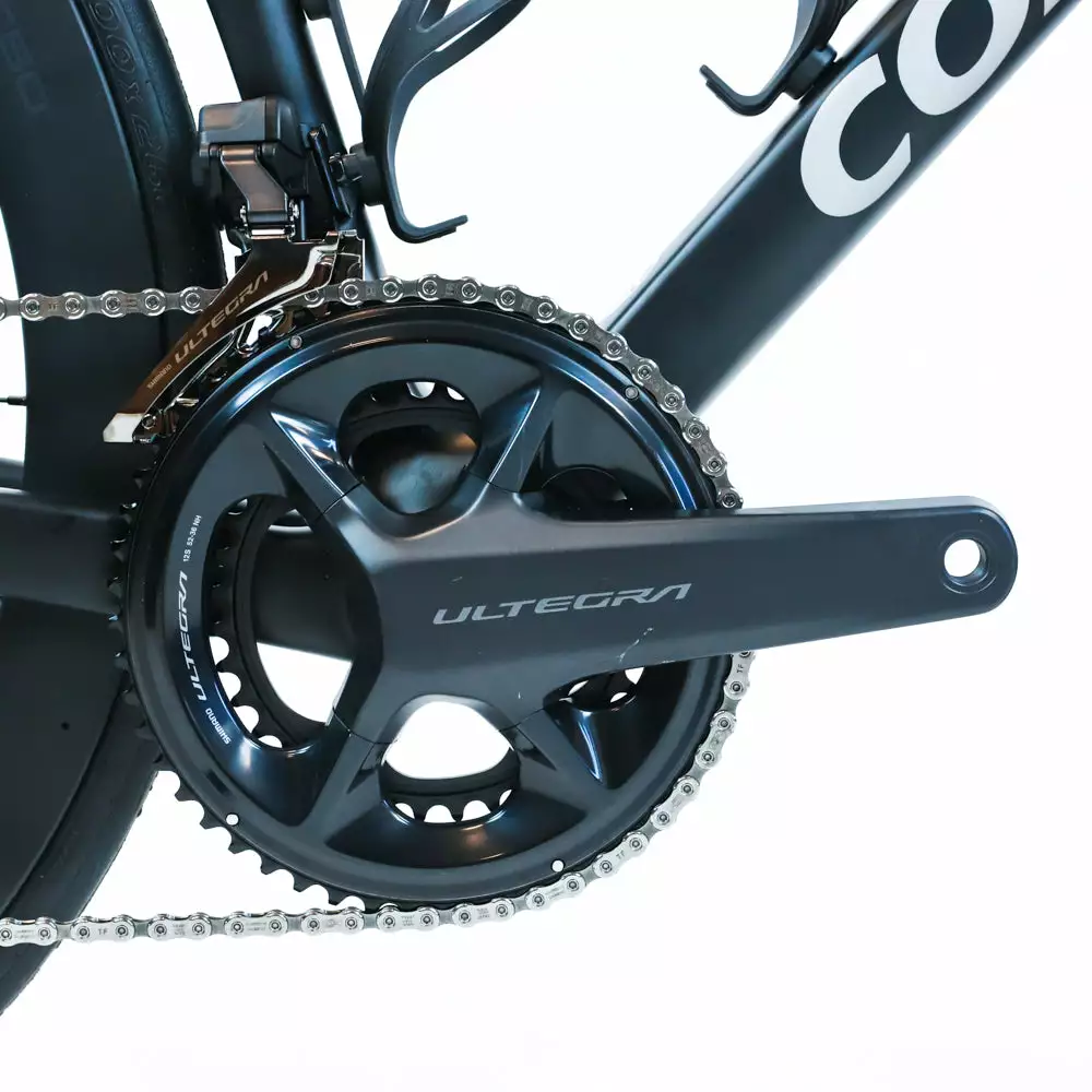 The bike is built with a brand new Shimano Ultegra Di2 electronic 12-speed groupset, a Shimano Ultegra C50 carbon disc brake wheelset, and a strong and lightweight frame-complementing cockpit.