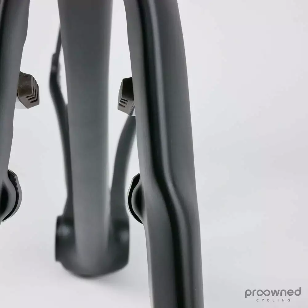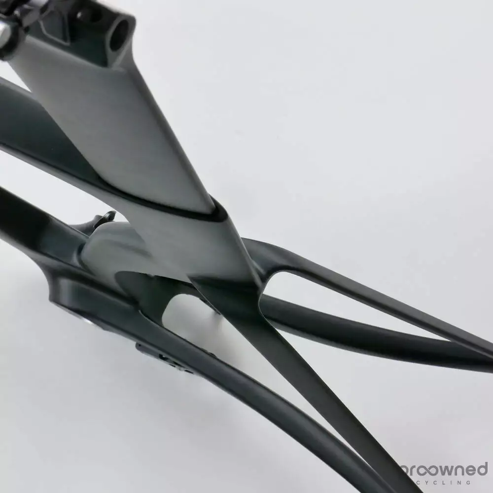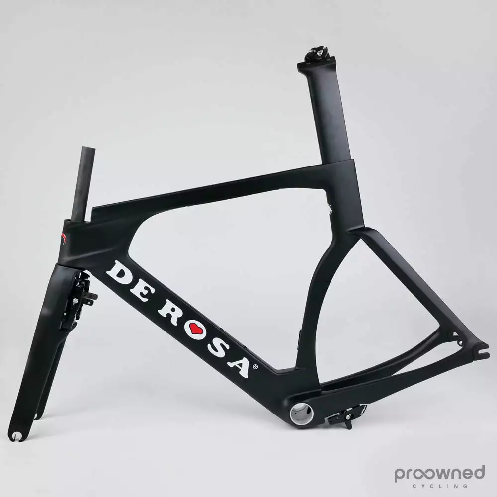 This frame is the result of two years of testing, prototyping, and adjusting in order to make one of the fastest frames on the market. De Rosa has taken no shortcuts in making this aerodynamic frame. Every curve and bend to the frame has been carefully considered to reduce CDA as much as possible. For instance, it is equipped with two aerodynamic, carefully hidden direct mount brakes and a carefully designed seat post.