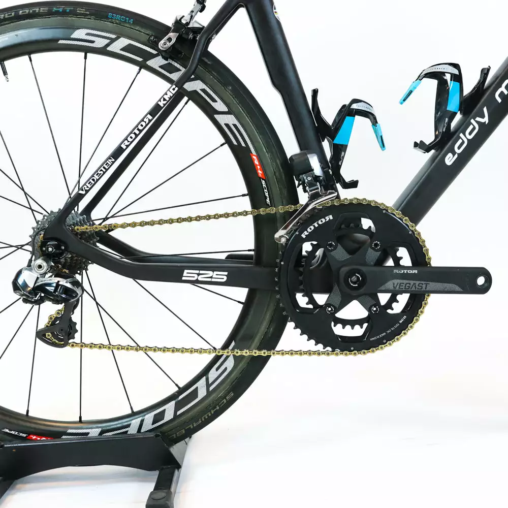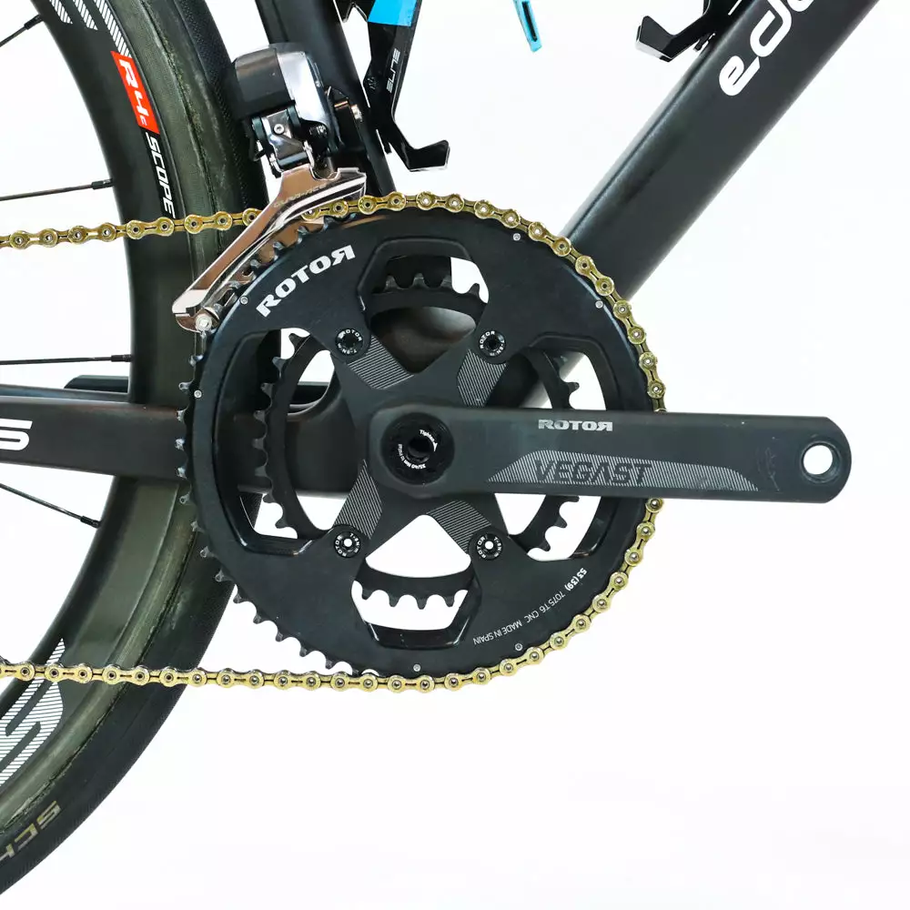 This bike comes with a Shimano 11-speed groupset, Rotor parts and a carbon wheelset.