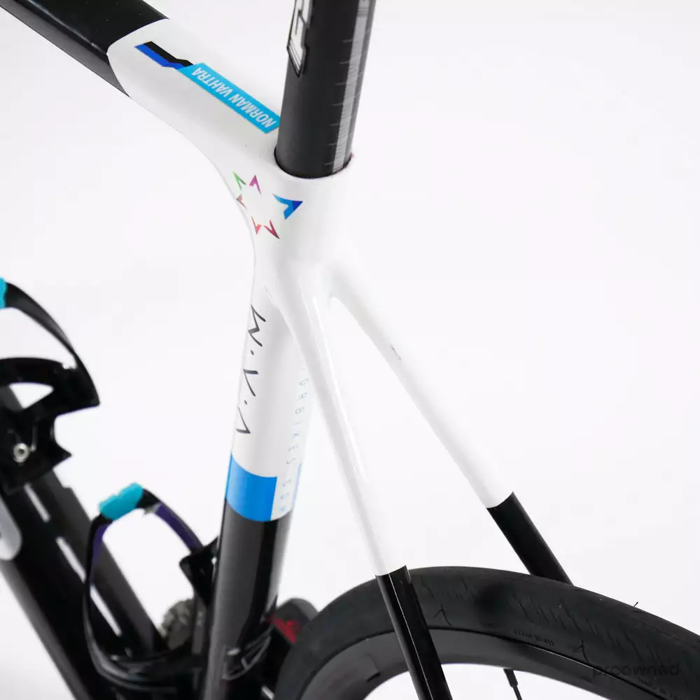 Made for climbing the O2 VAM is the lightest road frame ever made by Factor and used as the team’s lightweight climbing bike for the World Tour races. It features an internal and lightweight cable routing system for a beautiful aesthetic look, tire clearance, and low weight.