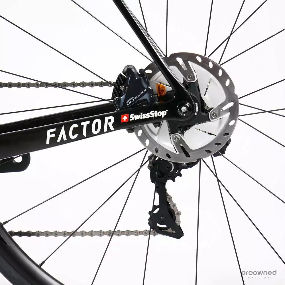 The geometry of the bike is perfectly balanced as being ideal for long climbs and aggressive descents while also providing comfort and stability for long adventures. With this bike, Factor has accomplished a disc-brake, high-tech, and super-lightweight performance frame and made it accessible for everyone.