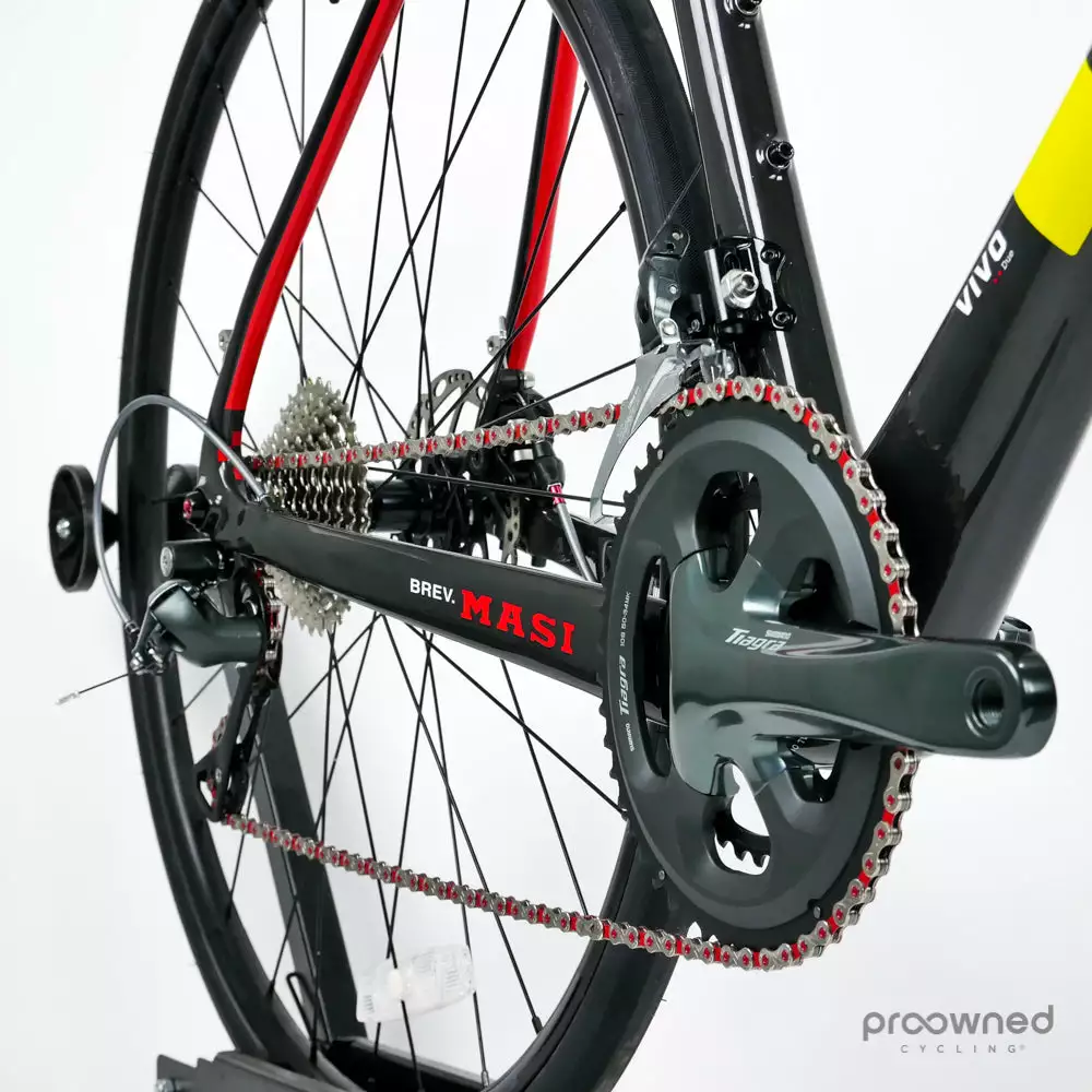 The Masi Vivo Due is an excellent entry-level road bike with a carbon frame, mechanical disc brakes and Shimano Tiagra 10-speed equipment. The carbon frame ensures a comfortable and smooth ride even in hilly terrain and the disc brakes are designed to give the best braking options to secure a safe ride. The Masi Due Disc road bike comes with a custom alloy Ritchey handlebar, stem and seat post.