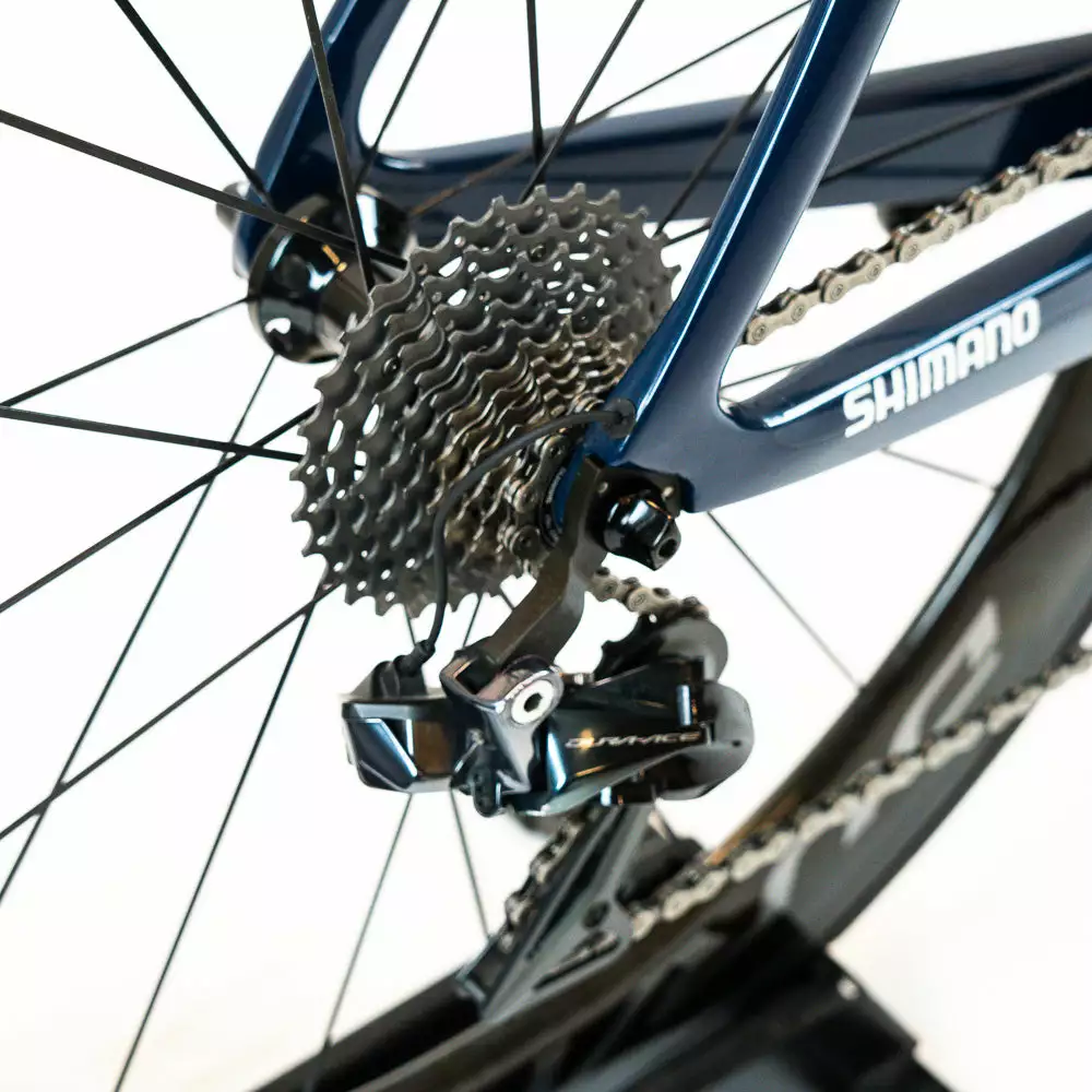 The condition of the bike frame is As new, and the components are As new and Very good – please see the details below. The bike is built with a Shimano Dura-Ace Di2 groupset, team-specific components, and a Shimano Dura-Ace C60 R9100 wheelset.