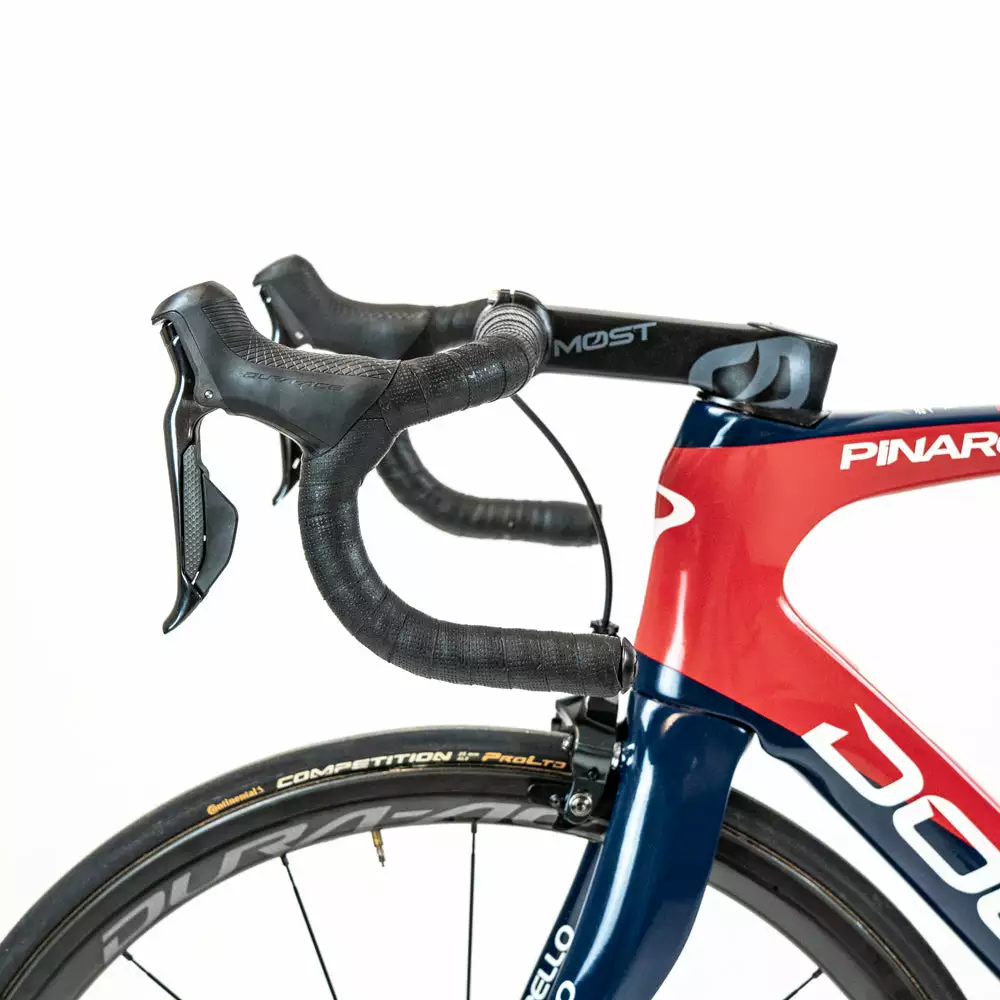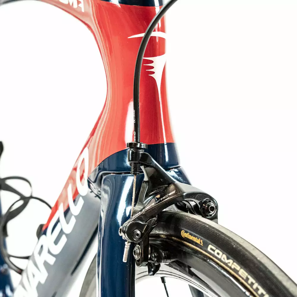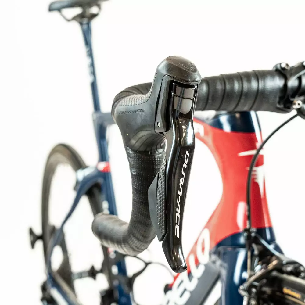 The condition of the bike frame is As new and the components varies from Brand new to Good. – please see the details below. The bike is built with a Shimano Dura-Ace Di2 groupset, team-specific components, and a Shimano Dura-Ace C40 R9100 wheelset.