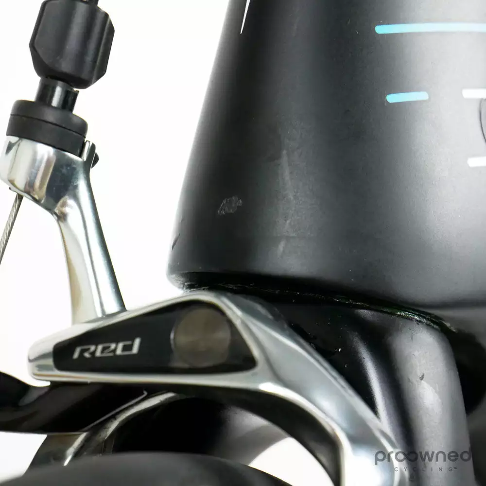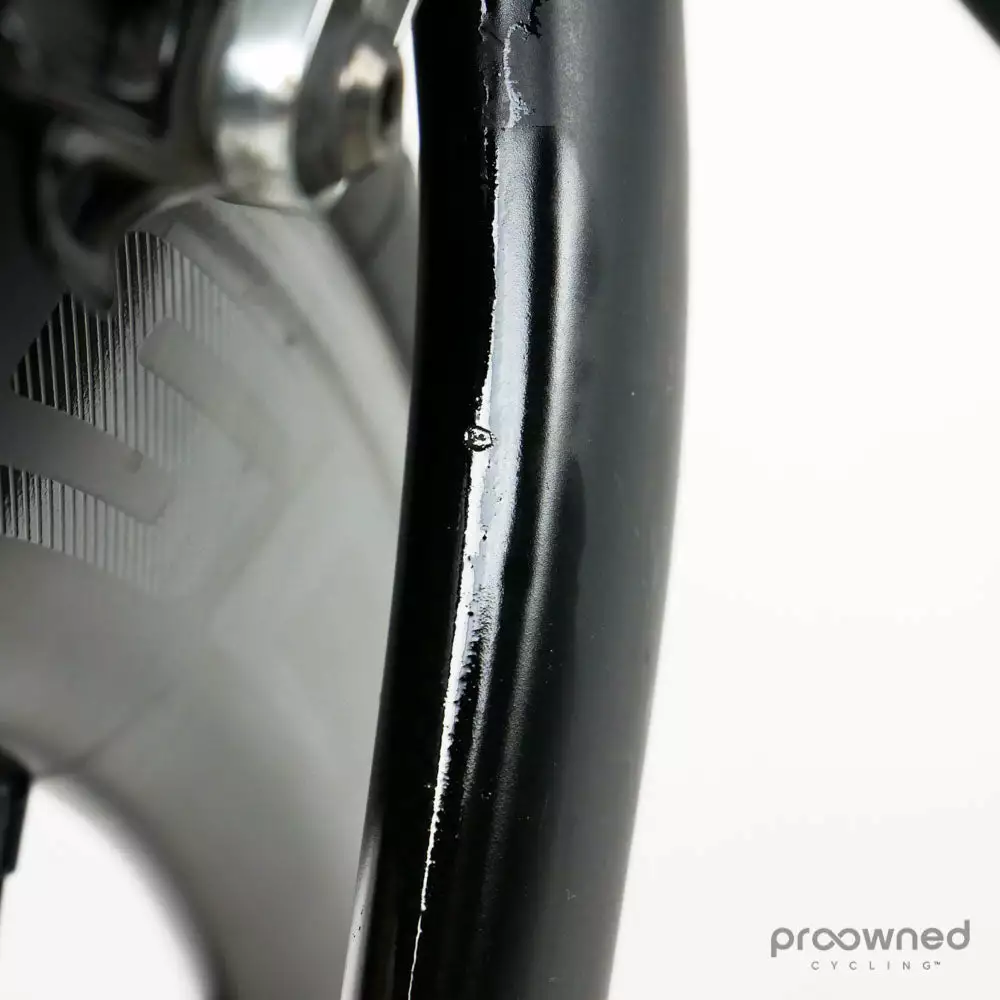 Scratches: Fork, rear stay, chainstay, downtube, stem, steerer, rear derailleur, shifters, and saddle.