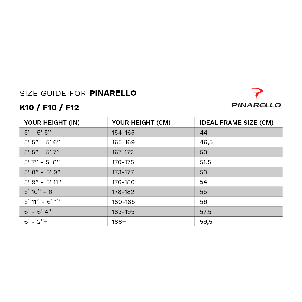 Pinarello measures their frames differently than most other manufacturers. Therefore, please consult the geometry chart for exact sizing.