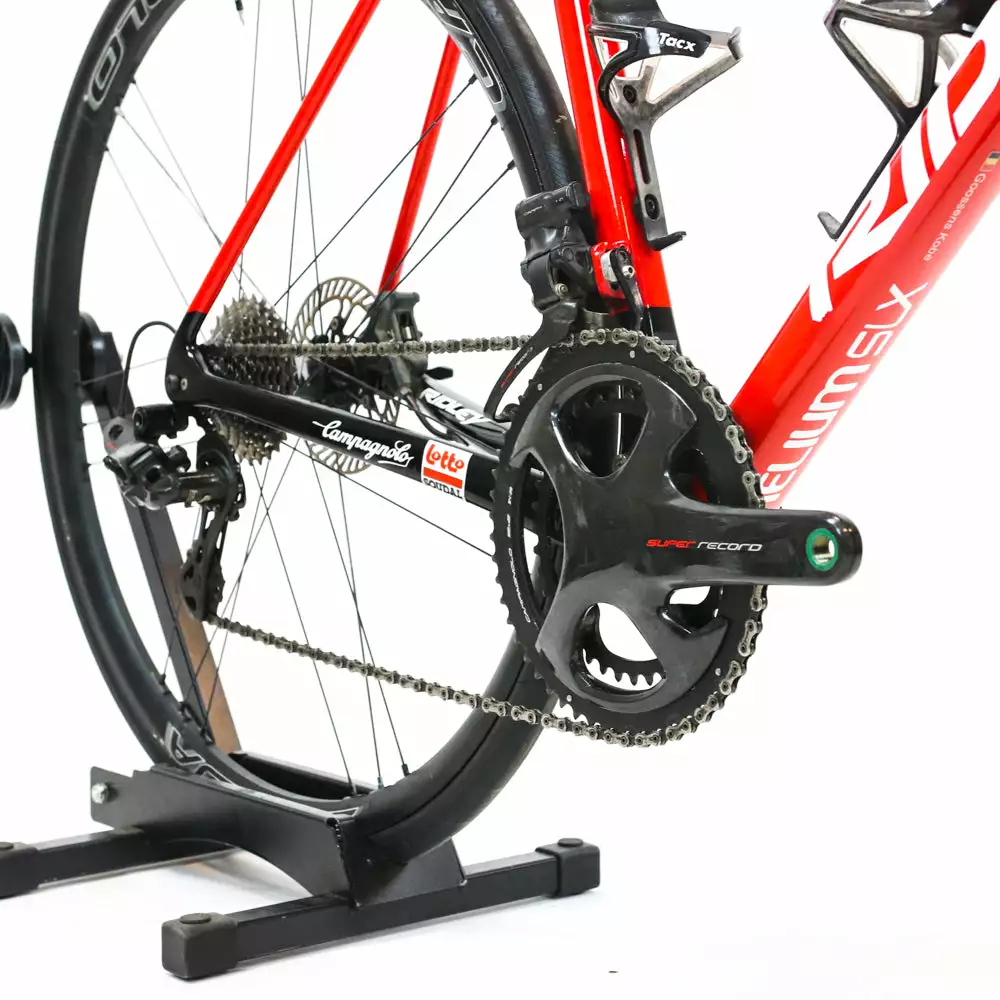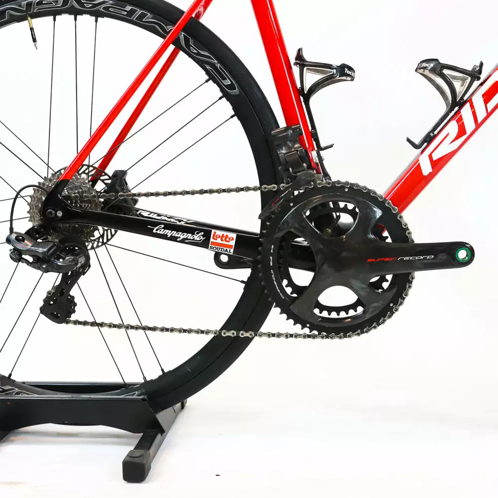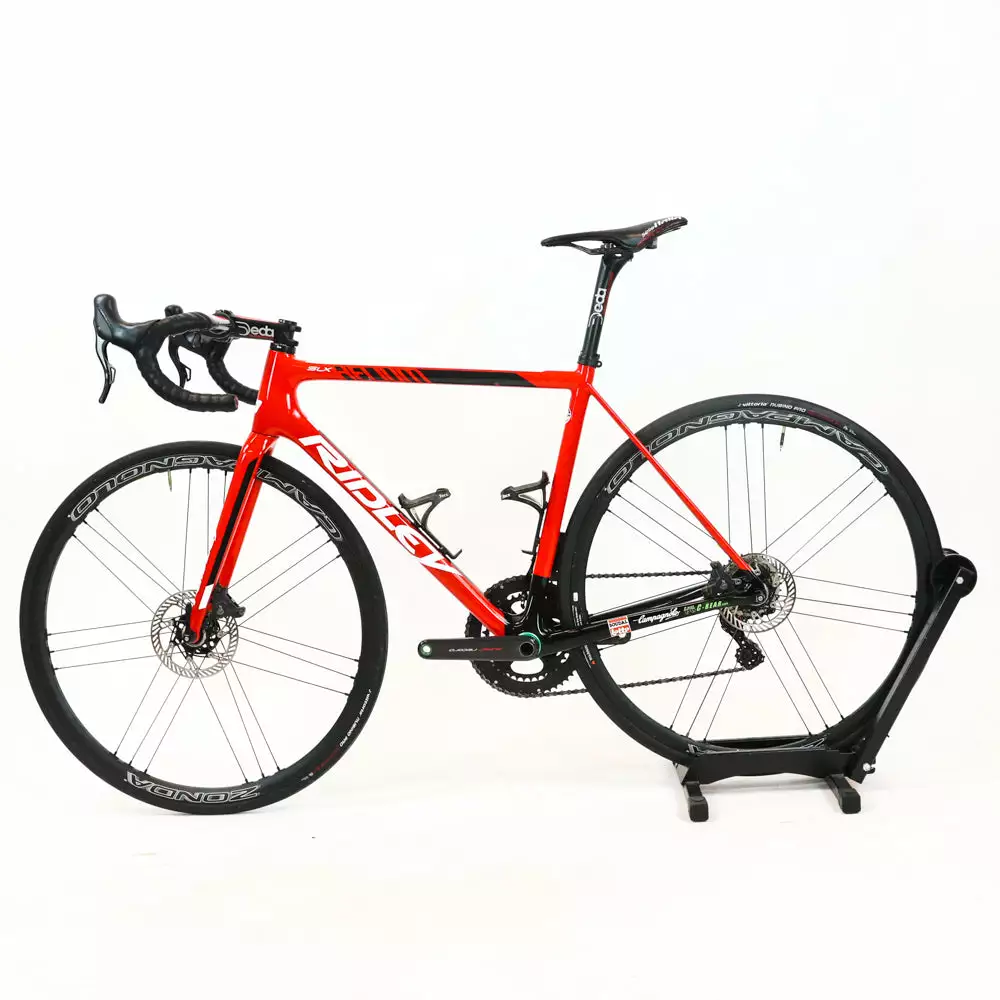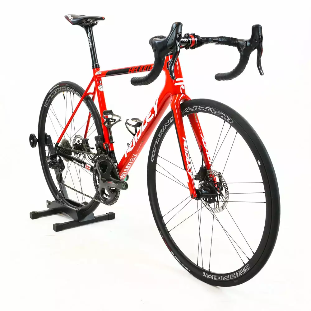 Ridley Helium SLX carbon road bike with disc brakes and Campagnolo Super Record EPS 12-speed groupset featuring a Campagnolo Zonda disc carbon wheelset.