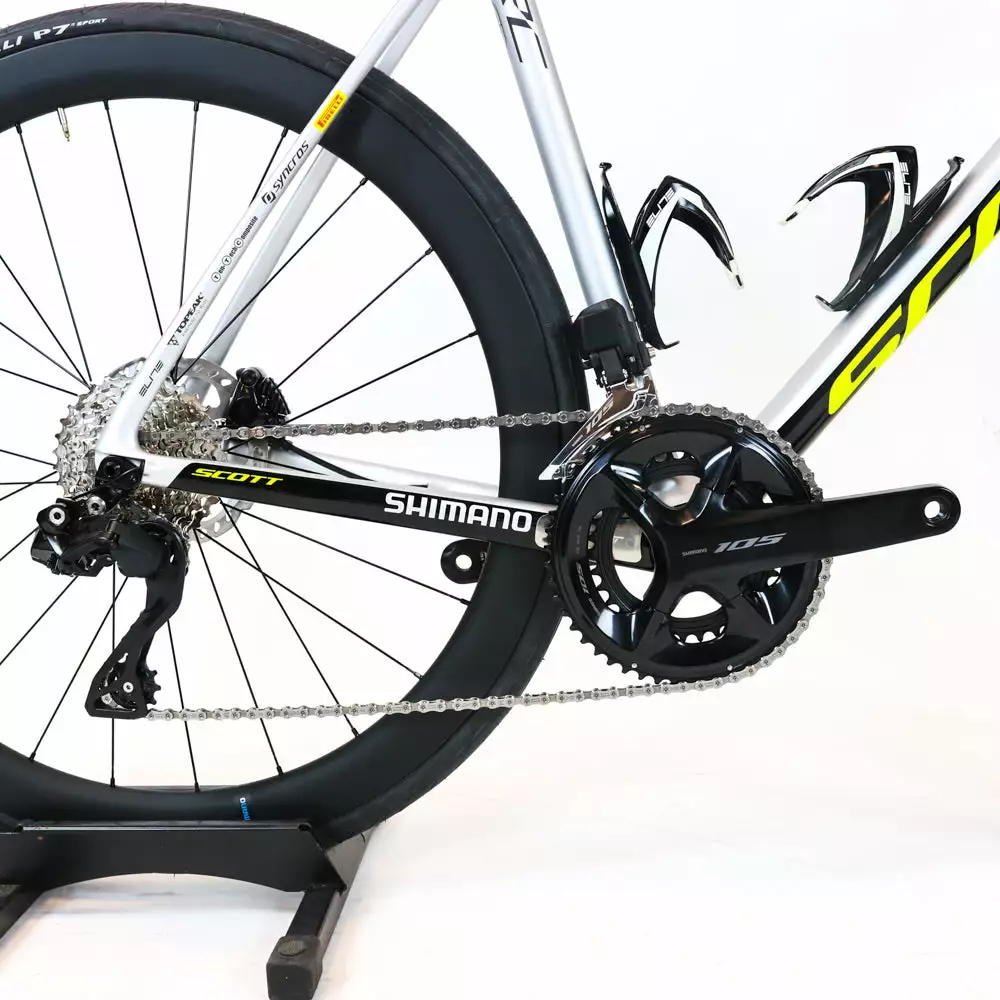 Brand new Scott Addict RC PRO Disc carbon road frame from the World Tour Team Mitchelton Scott with the new Shimano 105 electronic groupset and the new Shimano Carbon wheelset, C46 Disc.