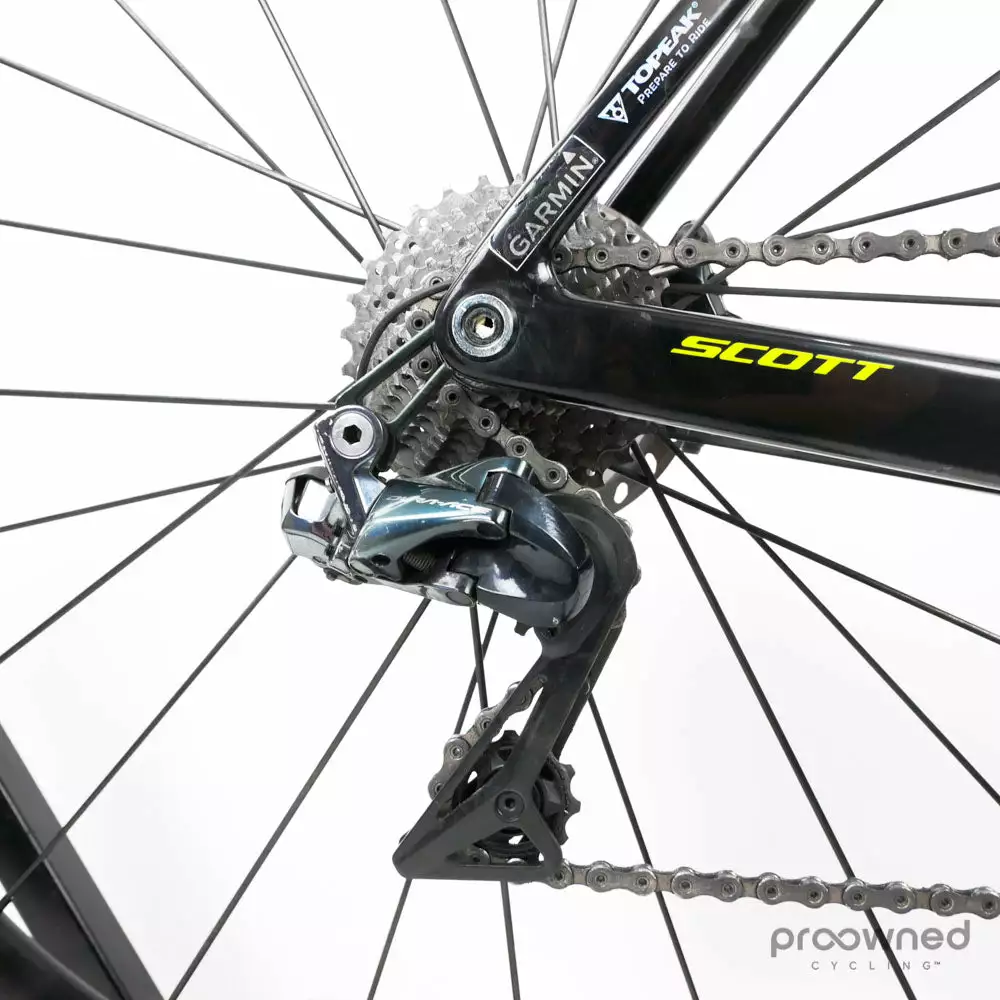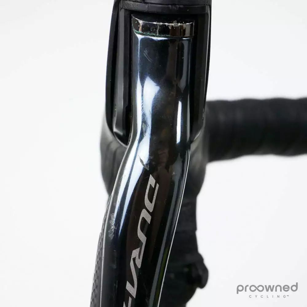 The team mechanics have well maintained this bike, and our Mechanic has furthermore restored it. It is equipped with the top-of-the-line electronic Dura-Ace 9170 2×11 speed Disc groupset by Shimano.