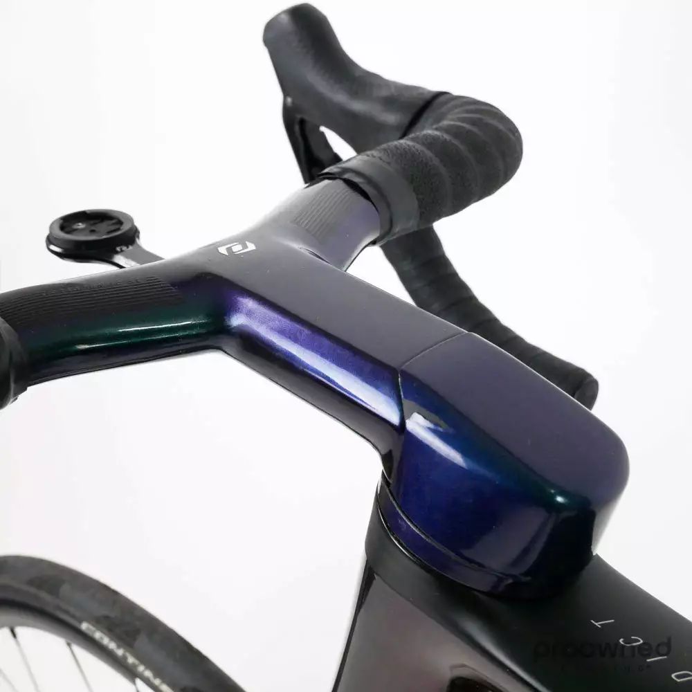 A clear demonstration of Scott’s commitment to integration is the new Syncros Combo Creston iC SL carbon bar and stem. The cables route internally from the hoods, into the bars, through the stem and the head tube. The Combo Creston iC SL bar even allows mechanical shifter cables to run internally too.