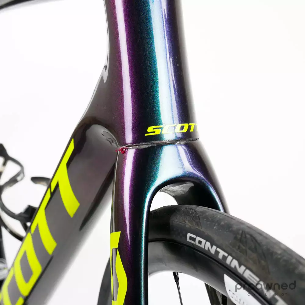 Furthermore, there is a large paint chip on the right side of the seat tube. This is also just cosmetic and does not affect the performance or strength of the frame.