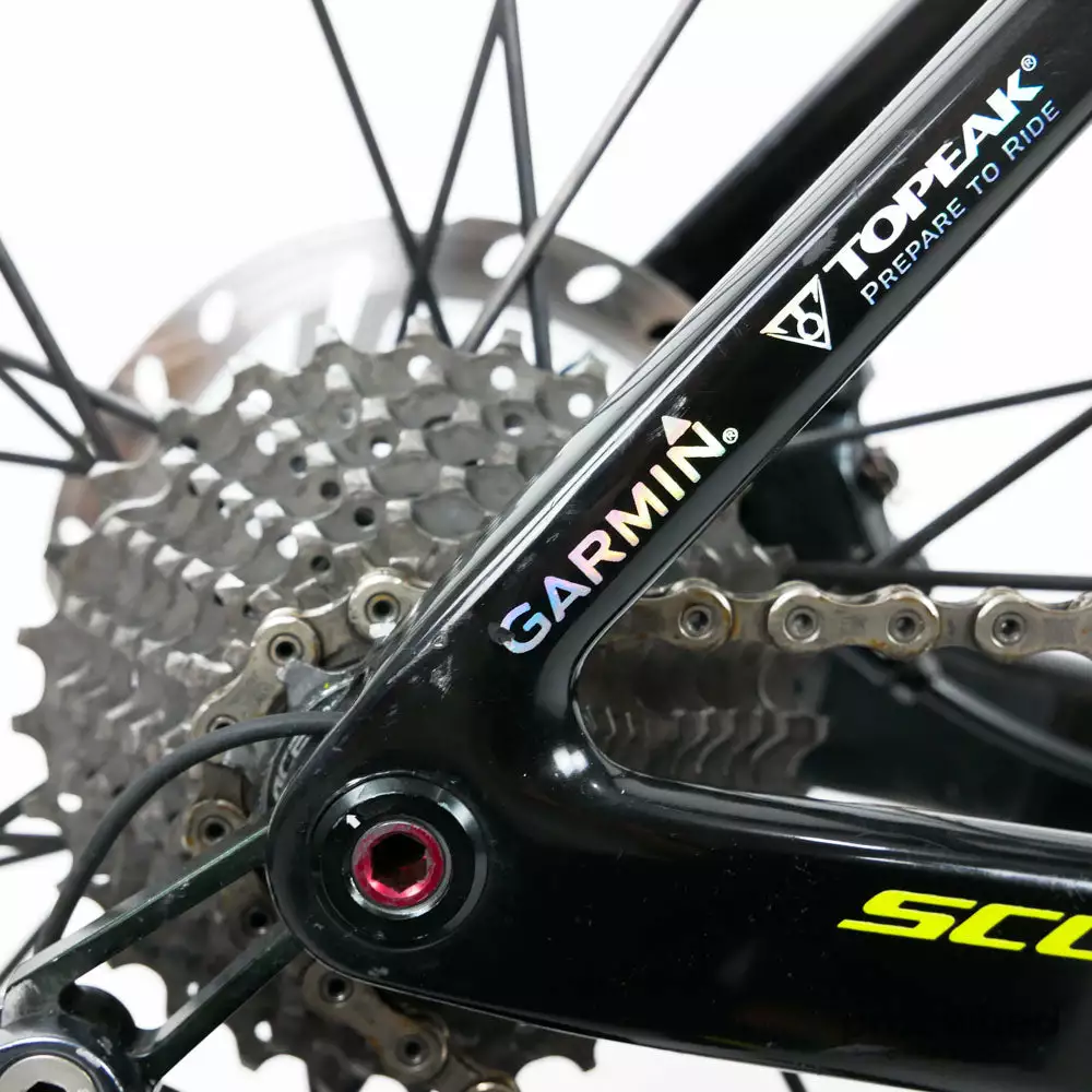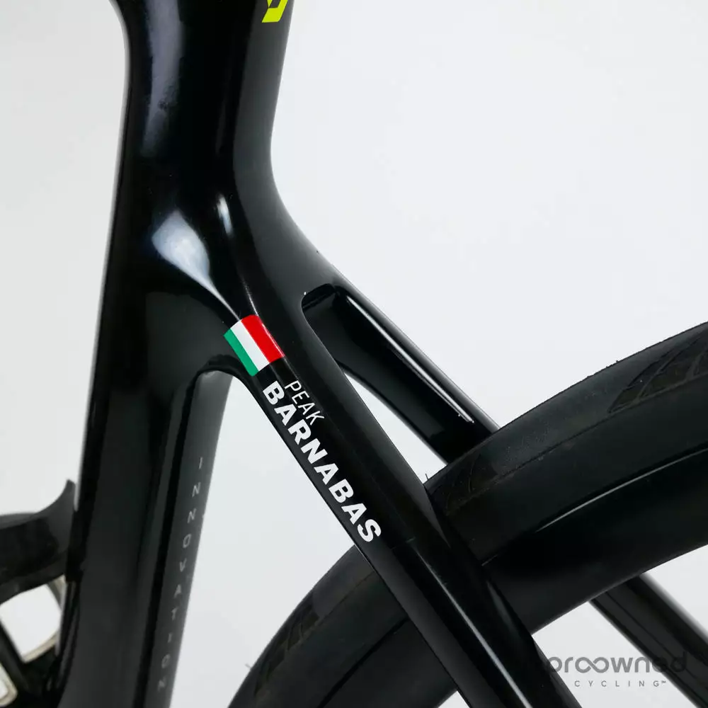 Extras: Tacx carbon cages. K-Edge/Syncros out front. Race number holder. Shimano sprint shifters. Power Magnet on the right side. K-edge Chain catcher