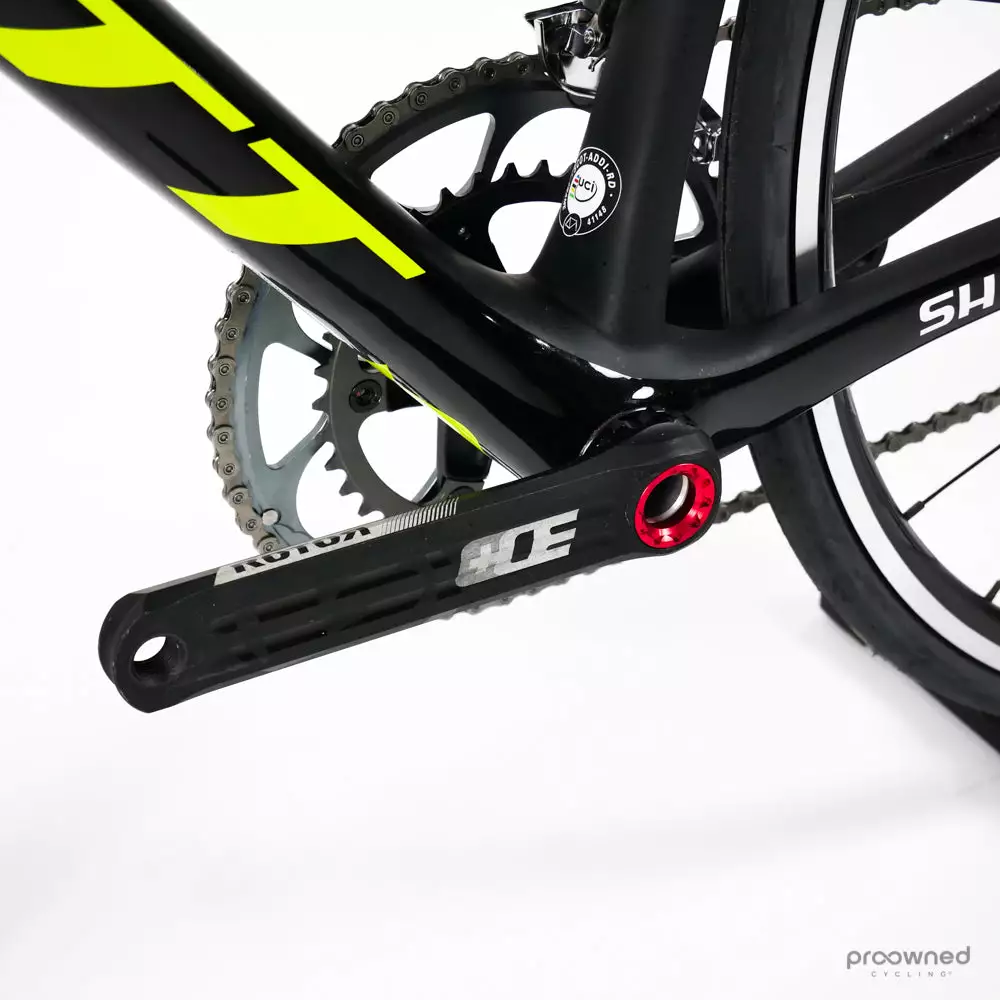 The bike frame is brand new and some components are as new – please see the details below. The bike is built with a Shimano Di2 groupset, team-specific Syncros components, and a Forza Norte wheelset.