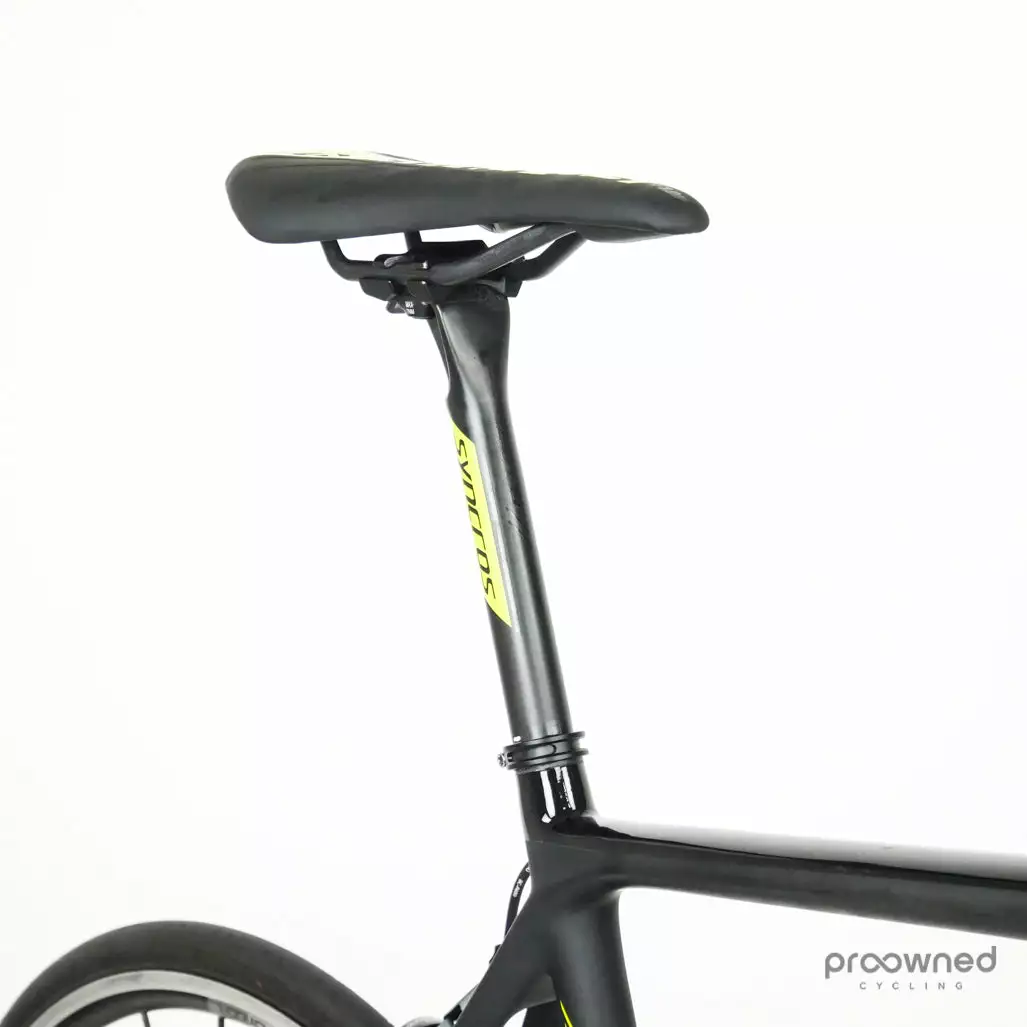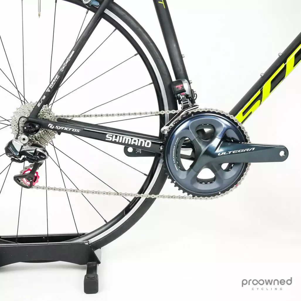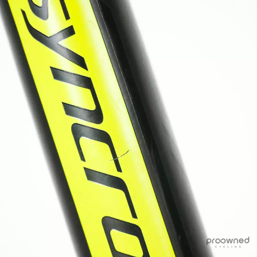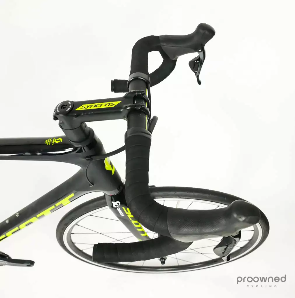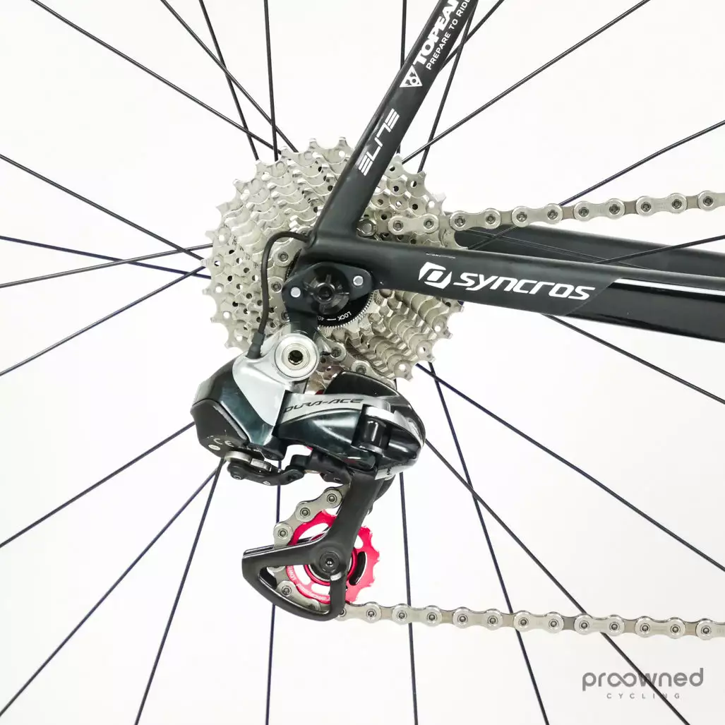 The bike frame is brand new and some components are used – please the details below. The bike is built with a Shimano Di2 groupset, team-specific Syncros components, and a Forza Norte wheelset.
