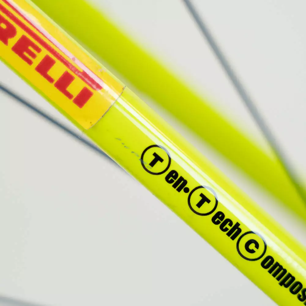 The condition of the bike frame is Very good, and the components are Brand new – please see the details below. The bike is built with a Shimano Ultegra Di2 groupset, team-specific components, and a Token disc wheelset.
