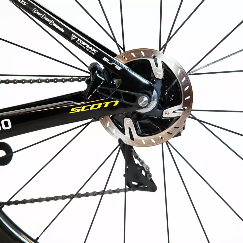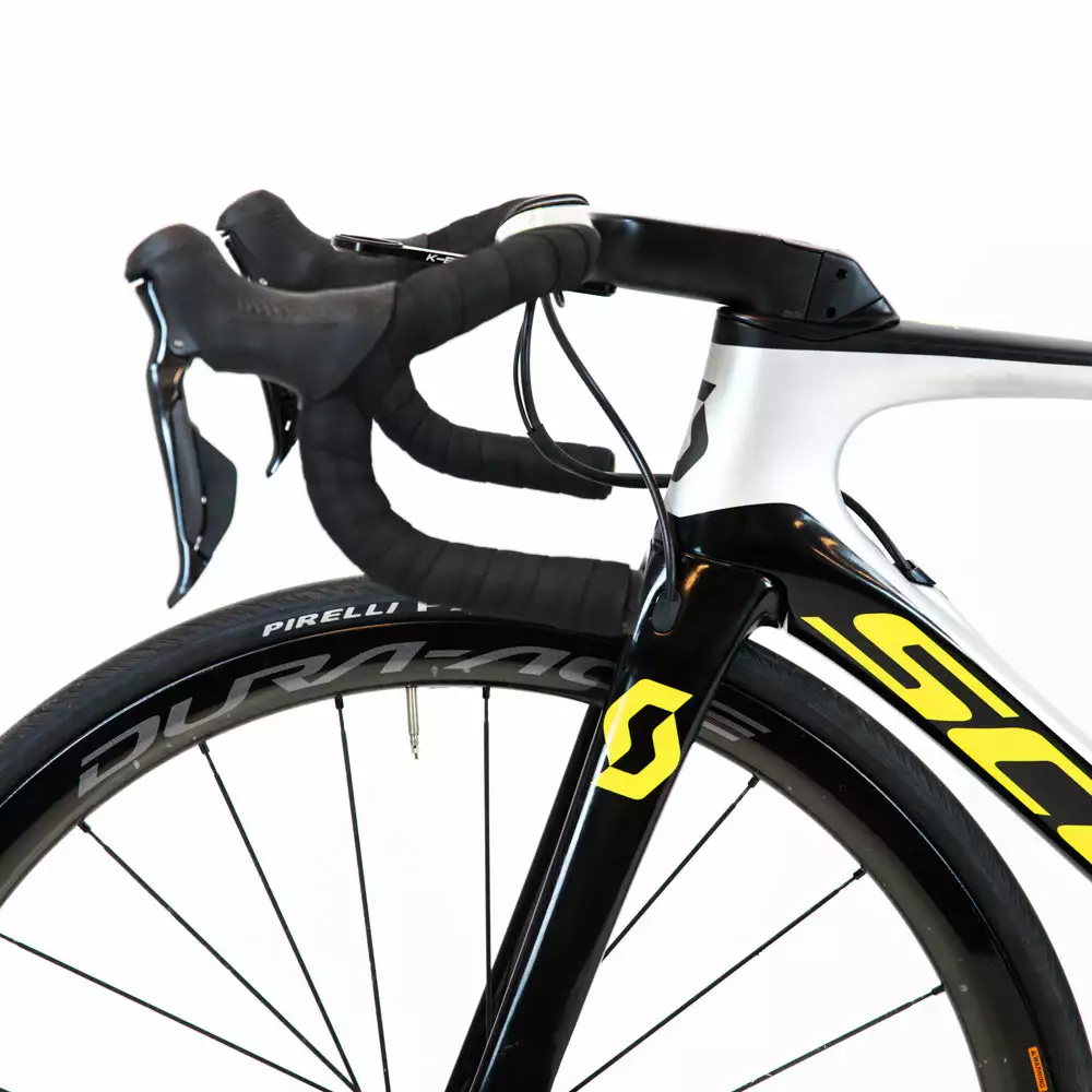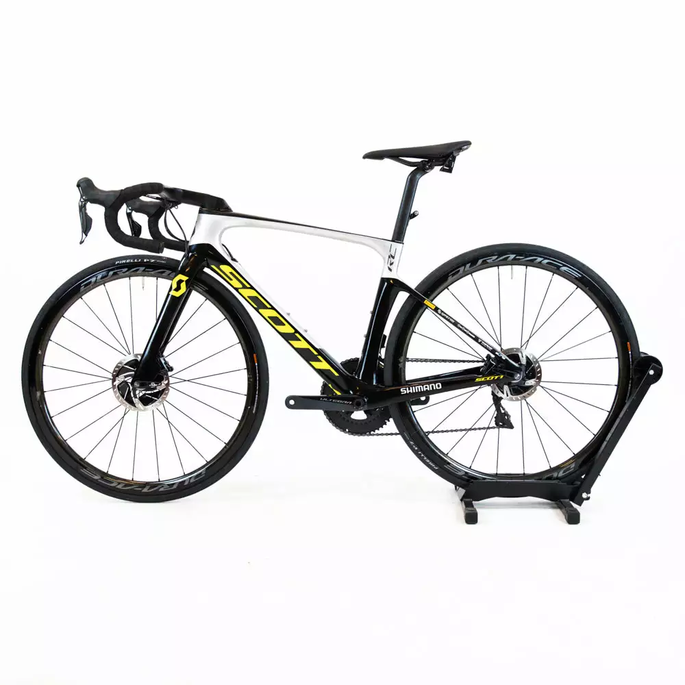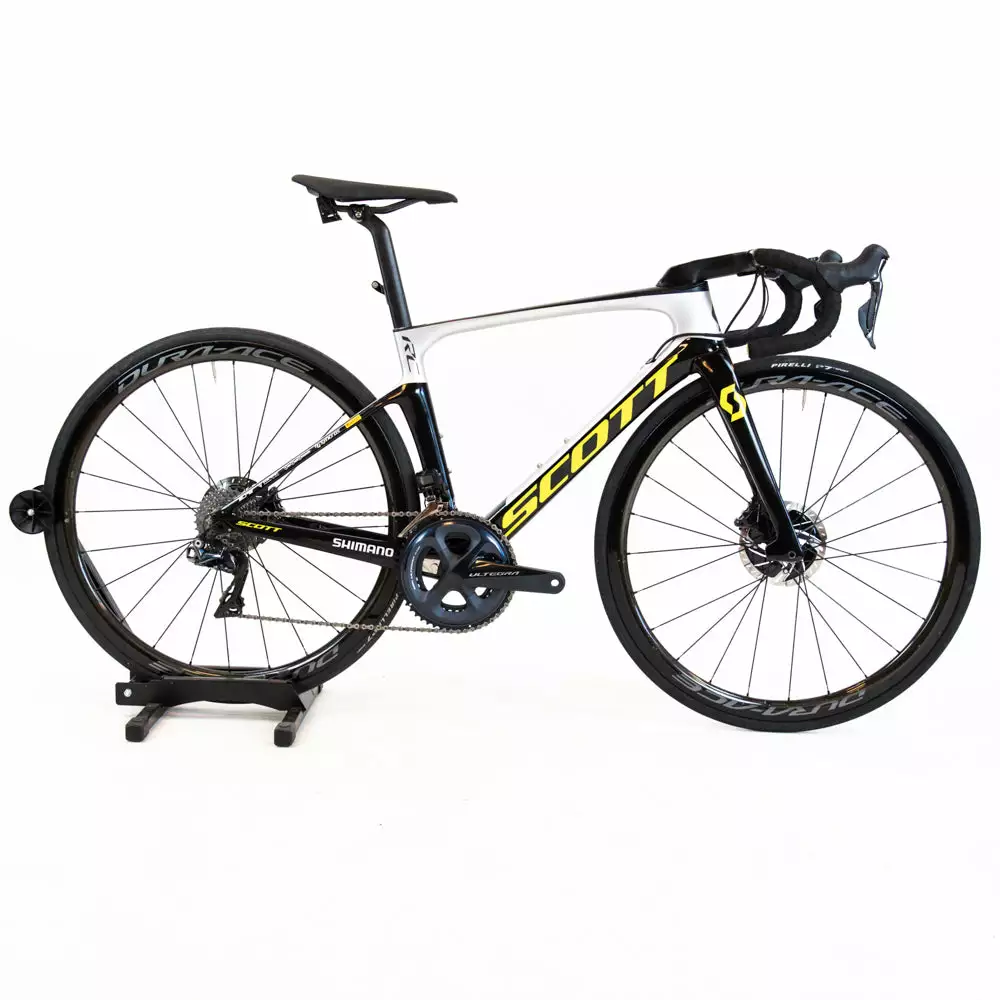 Scott Foil RC Pro Disc carbon road bike made for World Tour team Mitchelton-Scott. The bike features a Shimano Dura-Ace Di2 groupset and a Shimano Dura-Ace C40 wheelset.