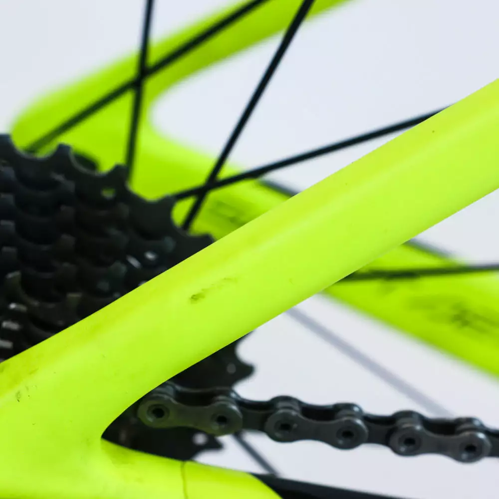 Scratches: chainstay, down tube, seat stay, head tube, top tube, seat tube, wheels