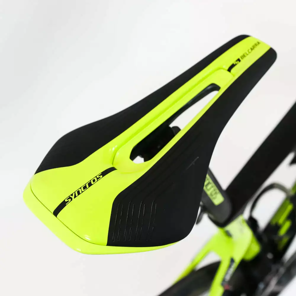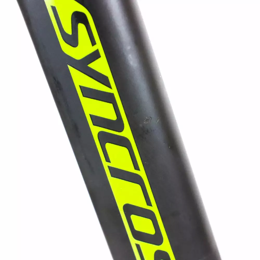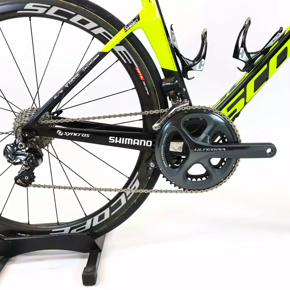 The bike frame is as new and some components are used – please the details below. The bike is built with a Shimano Di2 groupset, team-specific Syncros components, and a Scope R4C carbon wheelset.