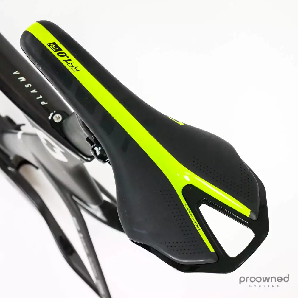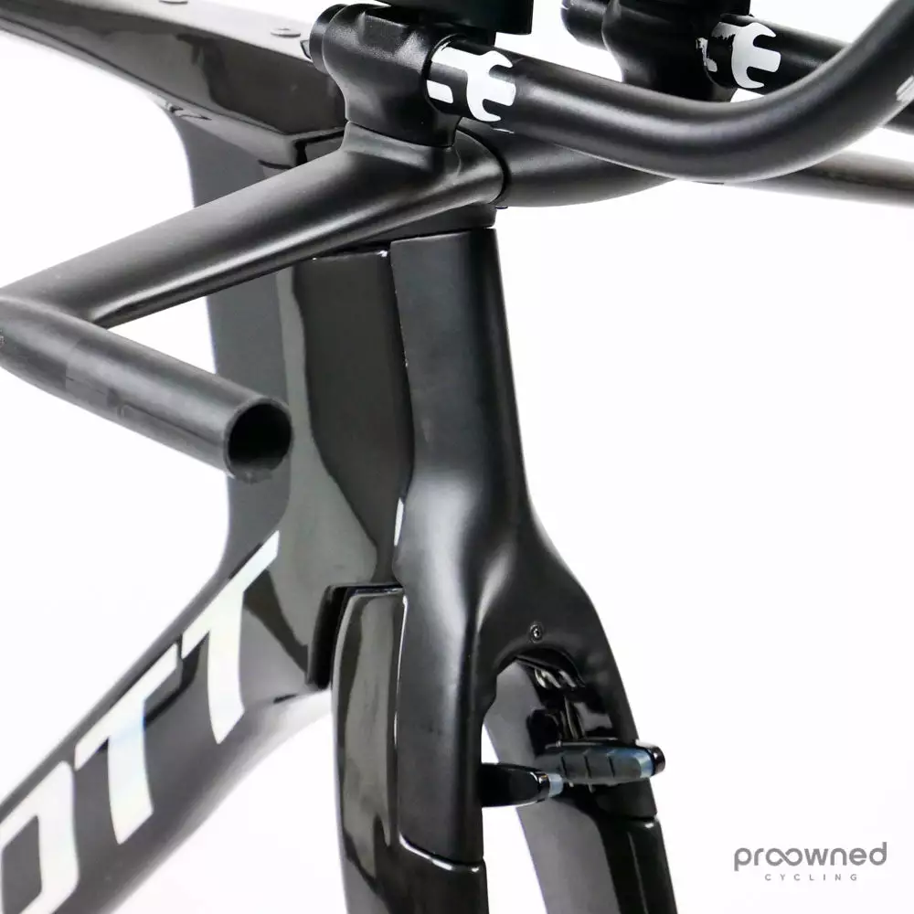 The Scott Plasma 5 HMX is the ultimate weapon in the race against the clock. Thanks to Scott’s restless aerodynamic refinement the Plasma 5 has proven itself to be an uncompromising speed machine. The HMX carbon lay-up is designed to maximize stiffness to ensure that every watt is transformed to speed.